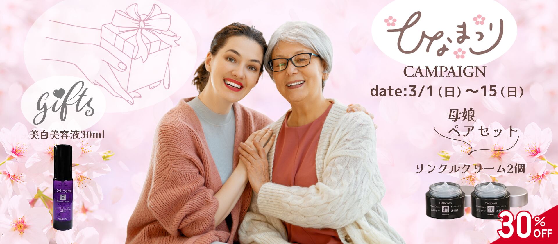 ひなまつりキャンペーン2026 「母娘ペアセット」Cellcomシリーズ 翌朝実感!塗るボトックス【リンクル・クリーム】